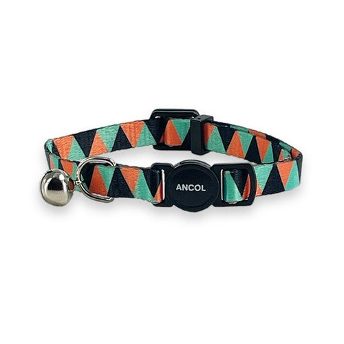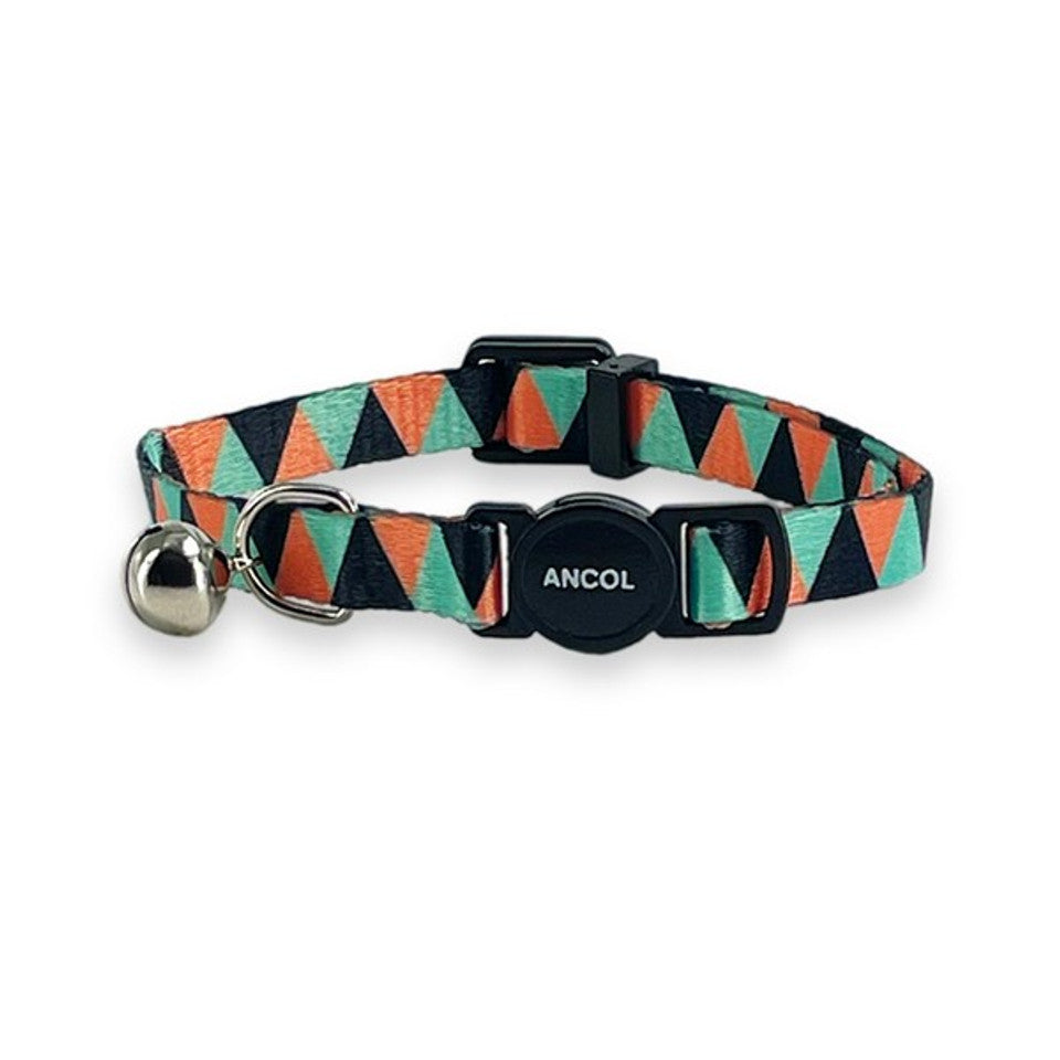 Bright geometric print adds personality while staying lightweight and comfortable for everyday wear. The safety break-away buckle lets adventurous cats escape if snagged, while the XL warning bell helps protect wildlife and makes your kitty easy to hear. Adjustable 7.9–11.8 in fit with clear guidance to leave two fingers between collar and neck for comfort. Remove the collar during liquid flea treatments; spot clean and check fittings regularly.