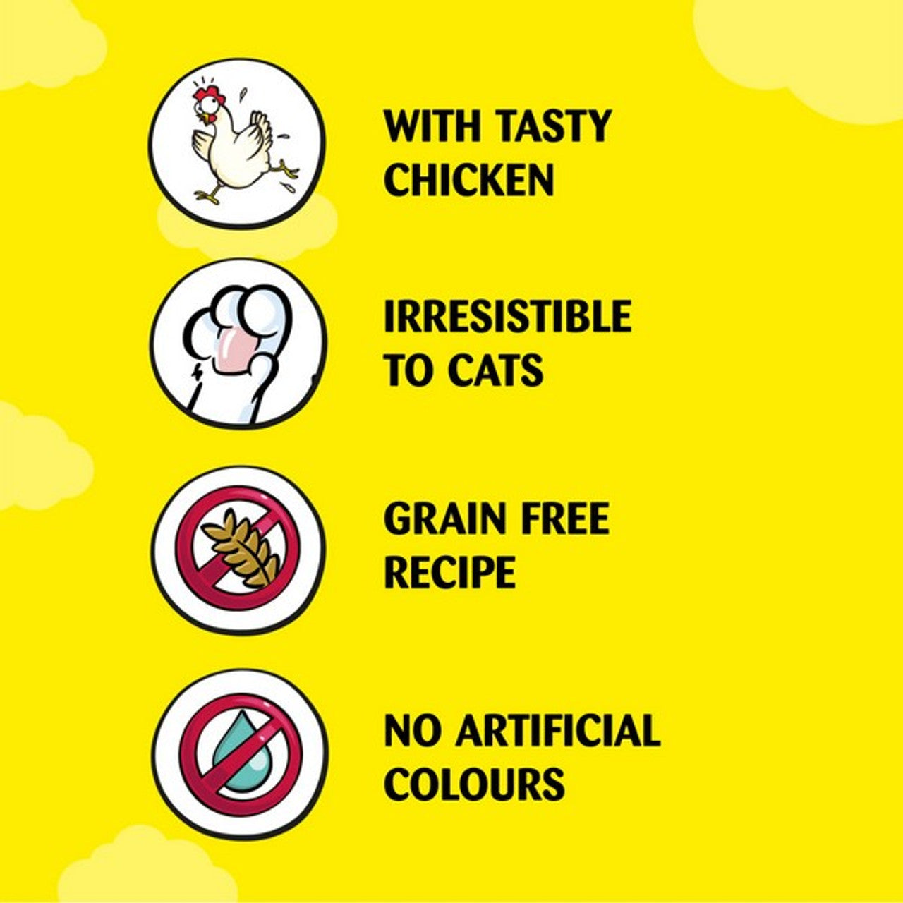 Crunchy chicken meaty sticks that reward cats with an irresistible aroma and taste. Each 30 g pouch contains six easy-break sticks ideal for training, rewards or a cheeky pamper. Made with real chicken and a low-fat profile to keep treats tasty but sensible. Handy single-serve pouches slip into a pocket or treat tin for fuss-free feeding.