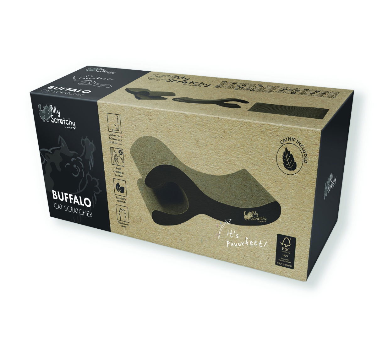 This clever buffalo-shaped scratcher gives cats the perfect place to stretch, scratch, and snooze. The corrugated cardboard texture satisfies natural clawing instincts while protecting your furniture, and its curved body doubles as a comfy lounge bed for post-play naps.