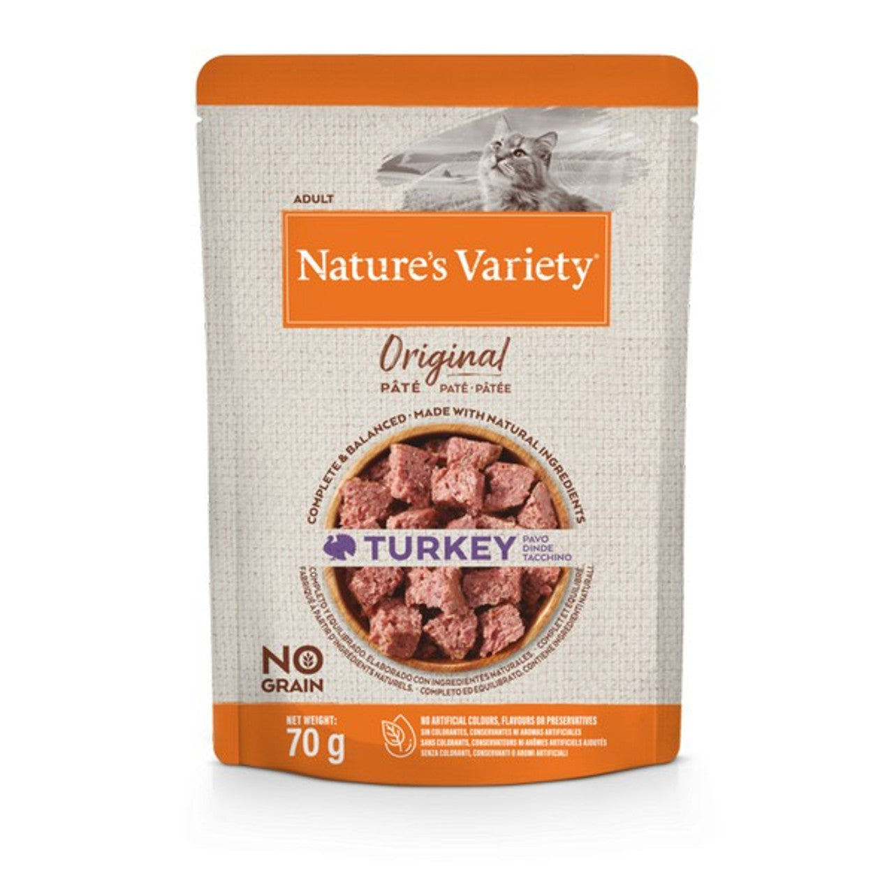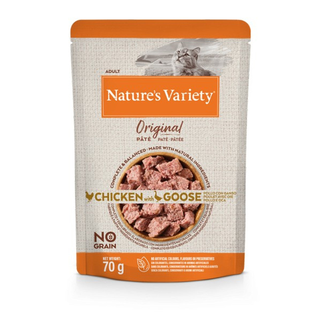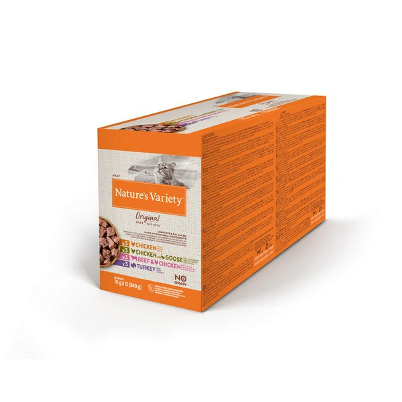 A tasty multipack of twelve 70g single-serve pâté pouches in four recipes (Chicken; Chicken with Goose; Beef & Chicken; Turkey) to keep mealtimes interesting. Grain-free and free from artificial flavours, colours or preservatives, each pouch is steam-cooked to lock in natural flavour and nutrients. Complete and balanced meals formulated to PFMA and FEDIAF guidelines and approved by veterinary nutrition standards. Store in a cool, dry place; refrigerate any opened pouch and use within 2 days.